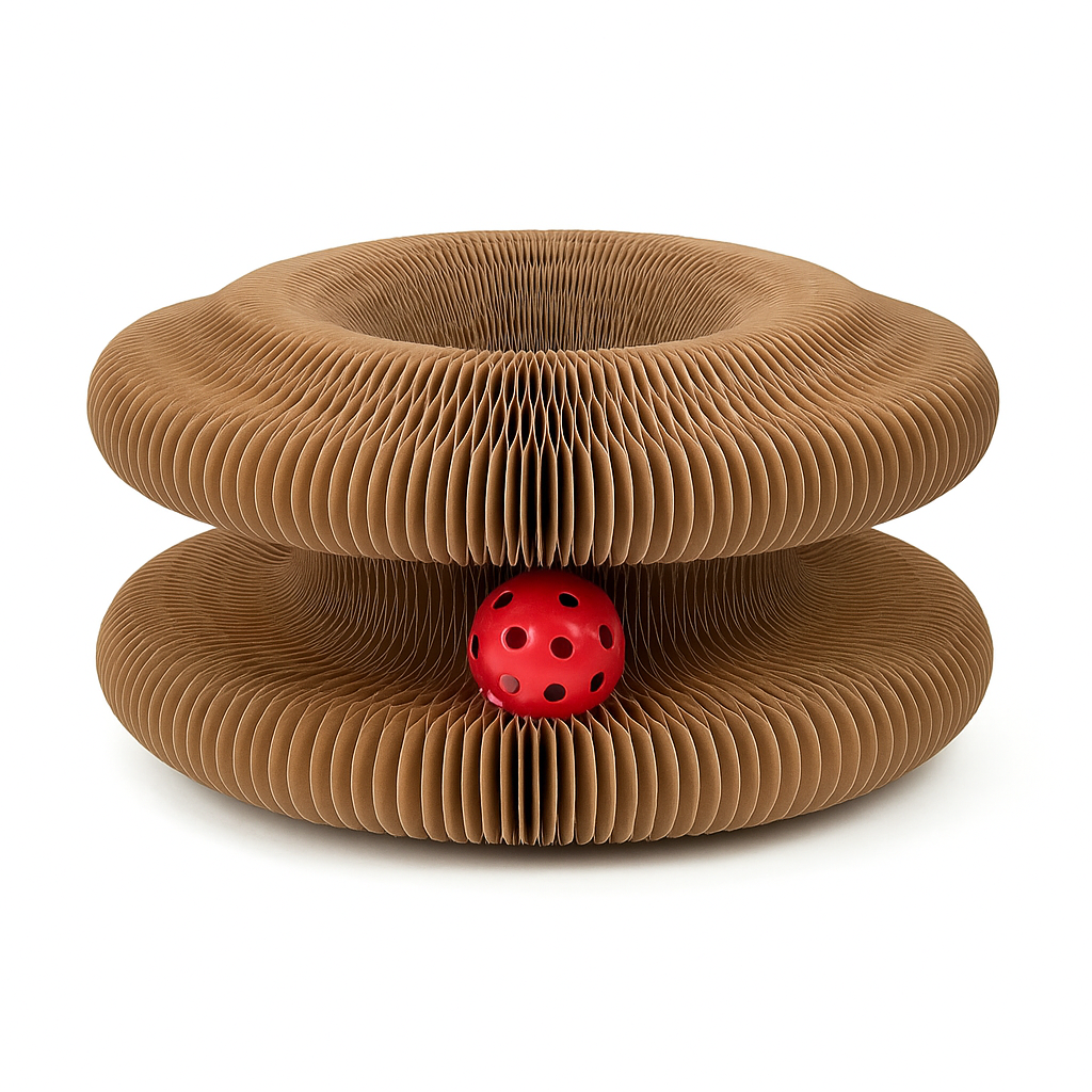 MiezRing bringt die perfekte Mischung aus Spiel, Kratzvergnügen und visuellem Reiz! Dieses faltbare Katzenkratzspielzeug lässt sich in einen faszinierenden Ring formen – mit versteckter „magischer Orgel“-Funktion, die bei jeder Bewegung ein neues Geräusch- oder Bewegungserlebnis bietet. Für Katzen ein echter Magnet – und für dich eine platzsparende, stylische Lösung!
